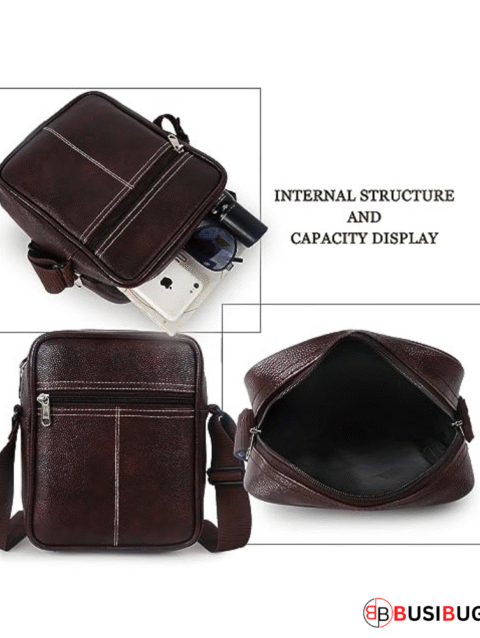 Brown PU Leather Sling Bag for Men & Women | 5L Waterproof Unisex Crossbody Travel Office Messenger Bag