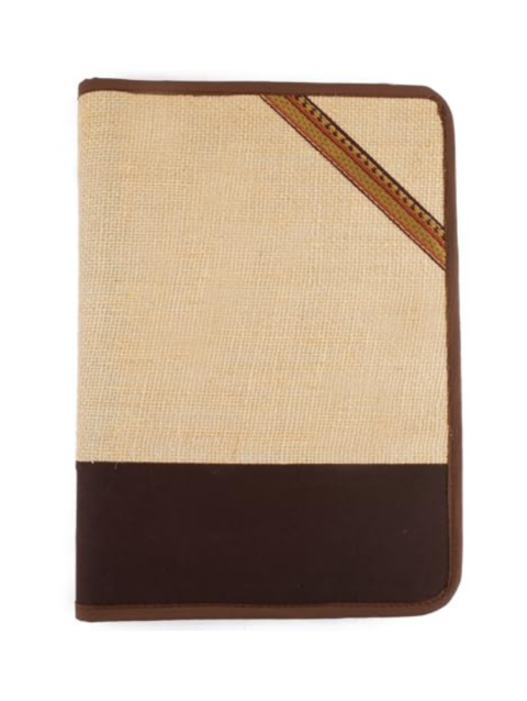 BusiBug A4 Eco-Friendly Jute File Folder | Handcrafted Document & Certificate Holder with Button Closure | Reusable Conference & Office File Organizer – Zari Corner Design