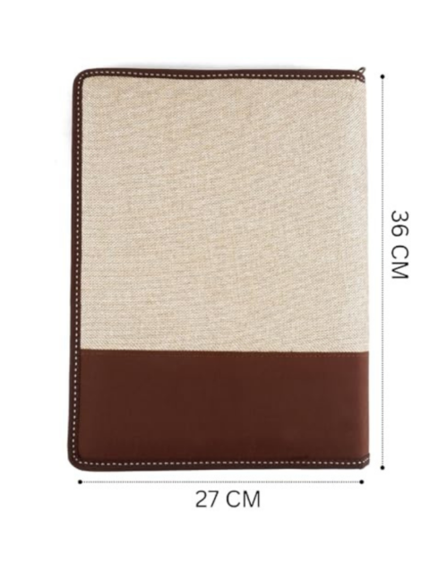 BusiBug A4 Jute Zipper File Folder | Eco-Friendly Professional Conference & Interview Portfolio | Certificate & Document Organizer for Meetings & Seminars (Coffee-Brown)