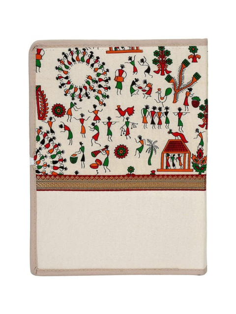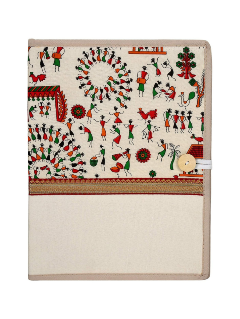 BusiBug A4 Warli Printed Fabric File Folder | Handcrafted Canvas Document & Certificate Holder | Traditional Indian Folk Art Conference Folder for Office & Personal Use (Multicolor)