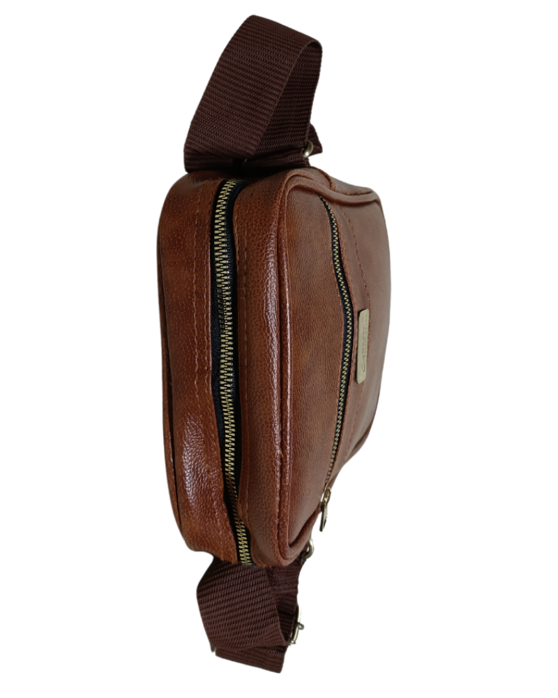 Brown PU Leather Sling Bag for Men & Women | 5L Waterproof Unisex Crossbody Travel Office Messenger Bag (Copy)