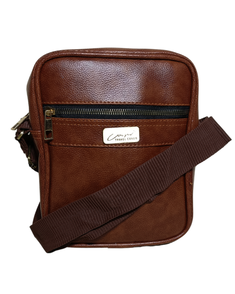 Brown PU Leather Sling Bag for Men & Women | 5L Waterproof Unisex Crossbody Travel Office Messenger Bag