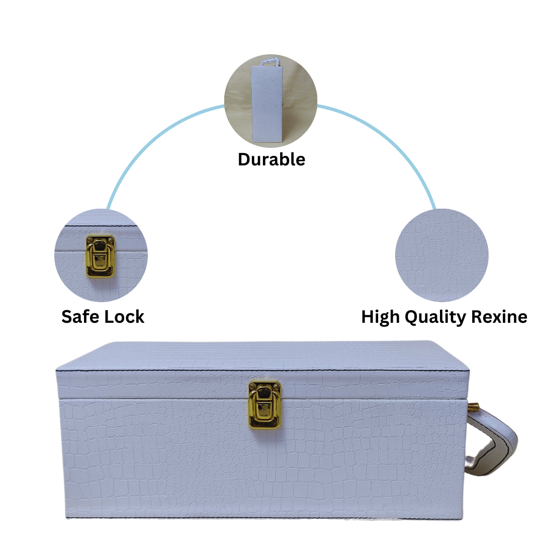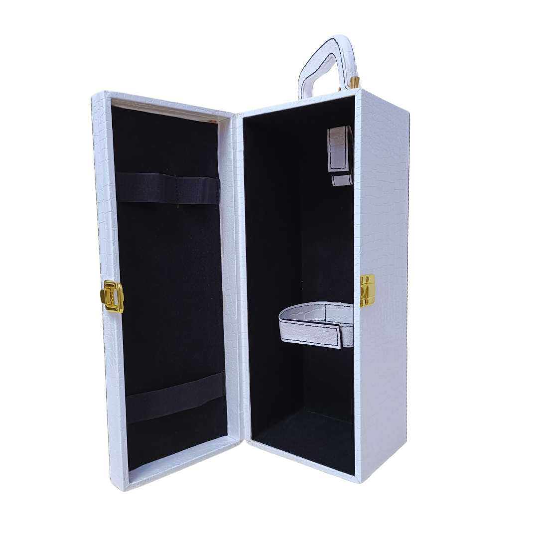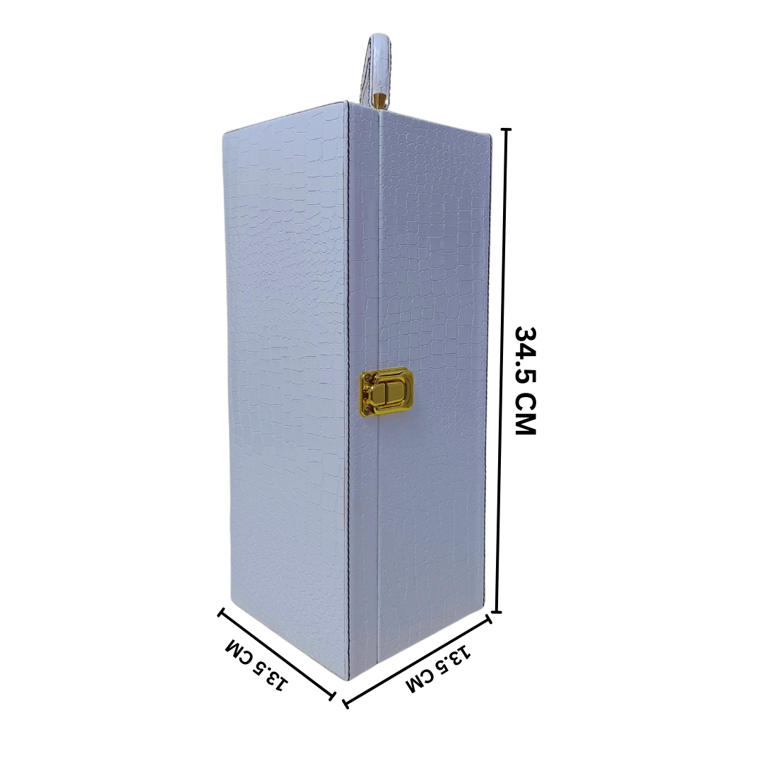 Crafted with elegance, this white croco-style leatherette wine box offers a premium look and sturdy protection for a single wine bottle. Perfect for high-end gifting, corporate events, and festive occasions. Customization available. Trusted Manufacturer & Wholesaler for bulk orders.