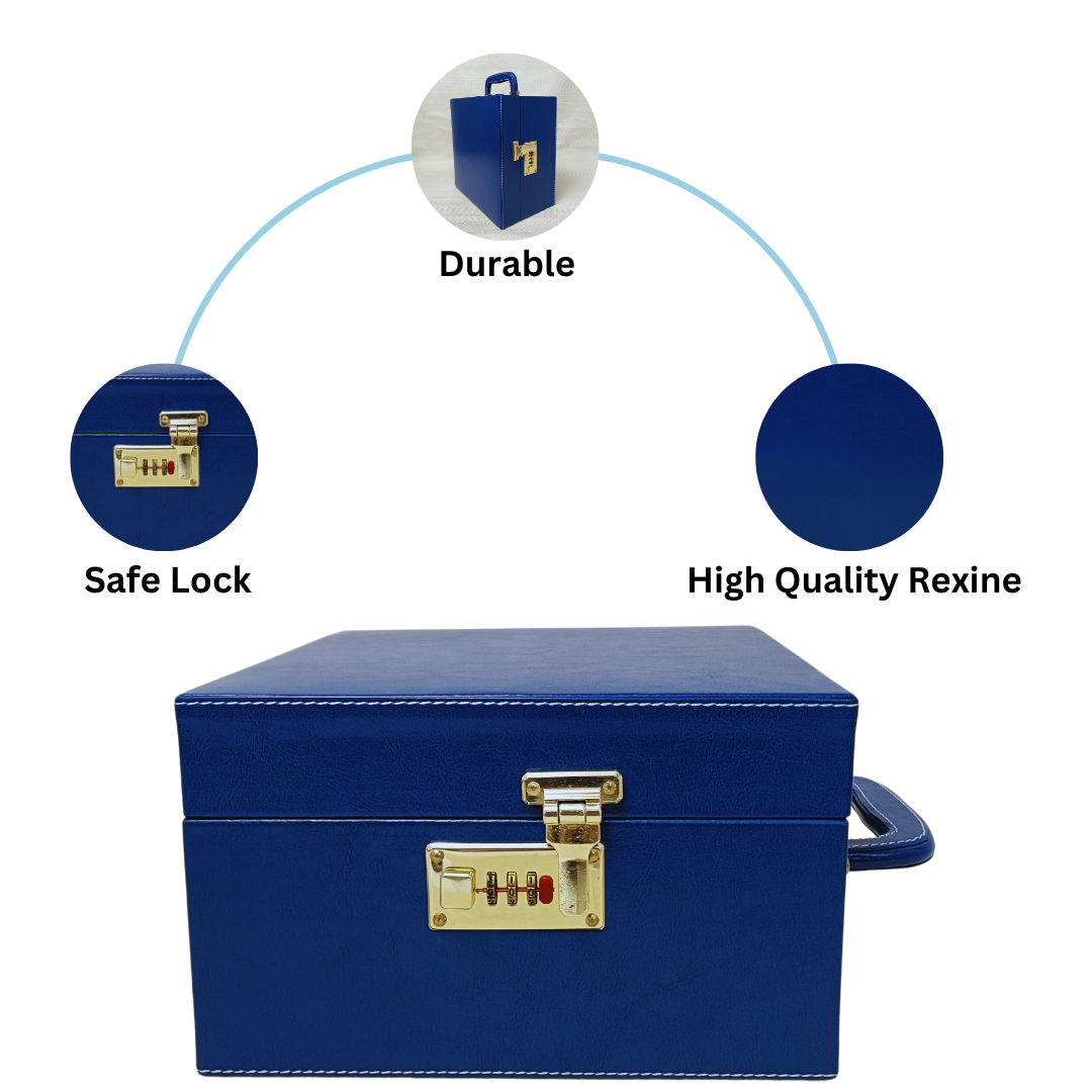 - Premium Leather-Finish Box: Elegant navy blue texture with a luxurious feel