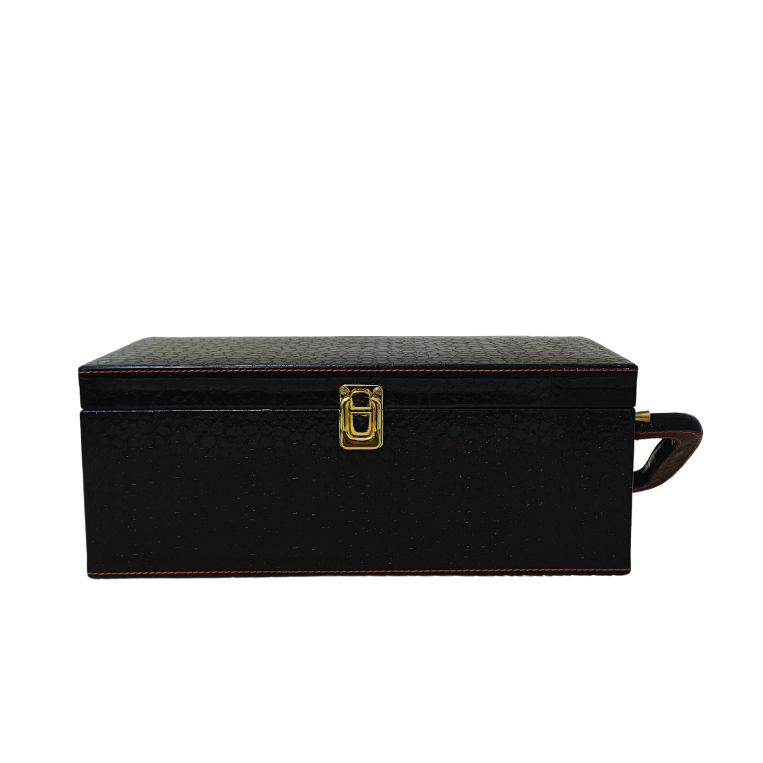 Single Bottle Wine Box – Black Croco Style Leatherette | Wine Gift Box Manufacturer & Wholesaler